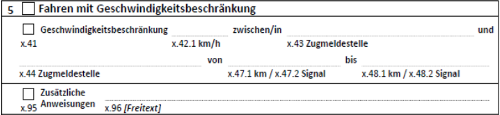 ![]() Wenn es im Streckenbuch bestimmt ist, müssen Sie den Zug bei Dunkelheit oder unsichtigem Wetter auf dem nächsten Bahnhof anhalten. Steht im Streckenbuch nichts geschrieben, dürfen Sie mit Ihrem Zug bis zum nächsten Haltebahnhof fahren. Nachdem Sie Ihren Zug zum Halten gebracht haben, müssen Sie den Fahrdienstleiter verständigen. Sie müssen versuchen das Nachtzeichen in Ordnung zu bringen. Dies gilt auch, wenn der Fahrdienstleiter Sie über die Unregelmäßigkeit informiert hat. Können Sie das Nachtzeichen nicht in Ordnung bringen, müssen Sie dies dem Fahrdienstleiter melden. Sie dürfen bis zu dem Bahnhof weiterfahren, auf dem das Spitzensignal repariert werden kann! Achtung evtl. Befehle! Es ist möglich, dass Ihnen für die Weiterfahrt bei Dunkelheit und unsichtigem Wetter auf Nebenbahnen Weisungen durch Befehl 5 und 95.95 erteilt werden. Im Befehl 5 werden Sie angewiesen mit höchsten 40 km/h zu fahren. ![]() Im Befehl 95.95 werden Sie angewiesen, auch vor nicht mit Pfeiftafeln gekennzeichneten Bahnübergängen ohne technische Sicherung Signal Zp 1 zu geben. ![]() |