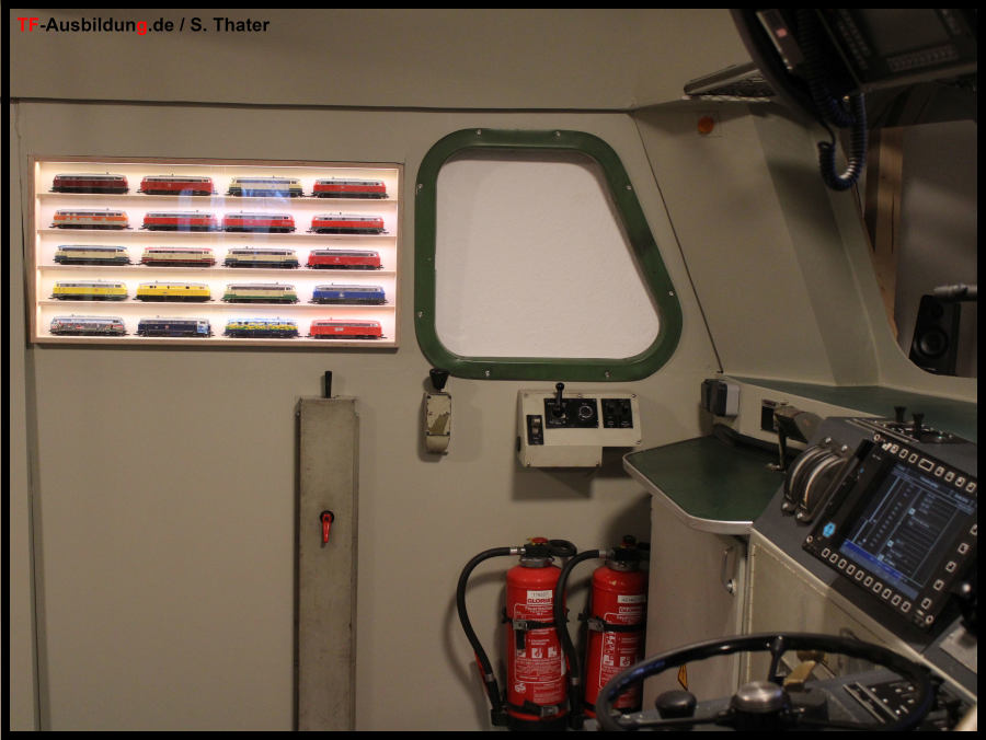 BR 218 Status: fahrbar Im Jahr 2022 konnten wir von einer Privatbahn ein komplettes Führerpult einer Baureihe 218 übernehmen. Ausgebaut wurde es mit allen Komponenten, inkl. Rahmen. Aktuell befindet es sich im Aufbau. Auch wird der gesamte Führerstand ringsrum ausgestaltet. Dies ist natürlich viel Arbeit und benötigt viel Zeit. Als Software wird auf Zusi 3 zurückgegriffen. Beeinflussungssysteme: PZB Türsysteme: SAT, TAV, TB0 Das Pult wurde komplett zerlegt und zum Großteil neu lackiert. Weitere Informationen zu dem Fahrsimulator erfolgen nach Fertigstellung. Der Fahrsimulator ist fahrbar, aber noch keineswegs fertig. Stand Dezember 2025: ![]() ![]() ![]() ![]() Stand Dezember 2024: ![]() ![]() ![]() ![]() Ältere Bilder: ![]() Gesamtübersicht ![]() Neu angefertigte Schalterbeschriftungen ![]() |