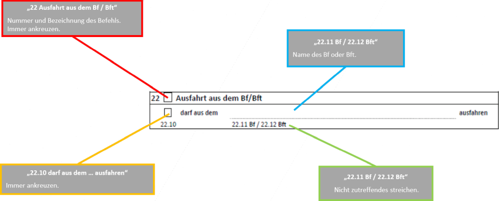 Beispiel eines ausgefüllten Befehl 22: