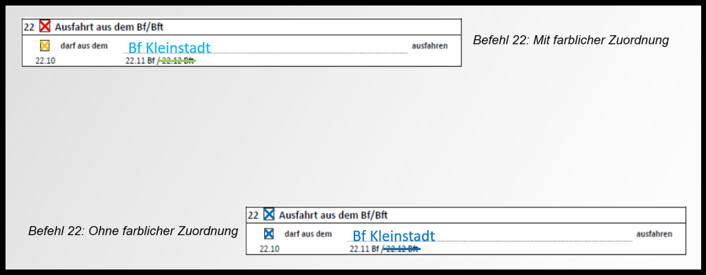 Beispiel eines ausgefüllten Befehl 22: