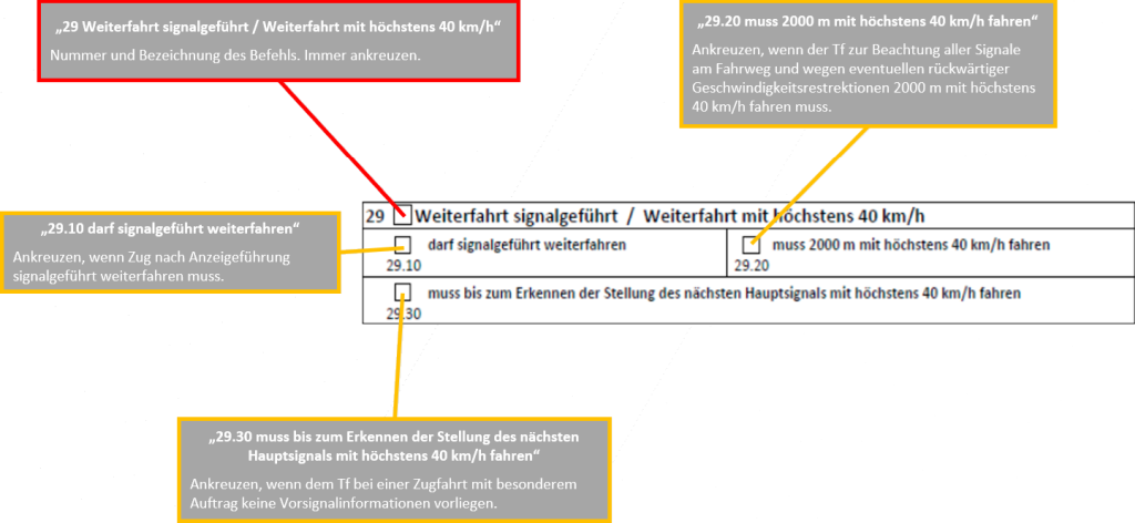 Weiterfahrt signalgeführt / Weiterfahrt mit höchstens 40 km/h