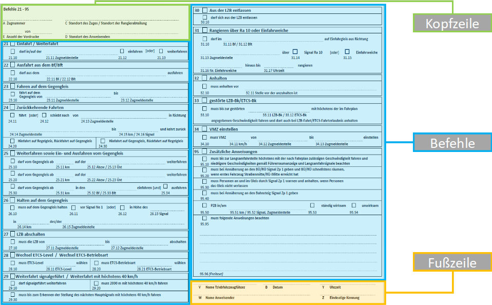 Der Tf muss die Befehle nach der Reihenfolge auf dem Vordruck abarbeiten können. Sind mehrere Befehle gleichzeitig