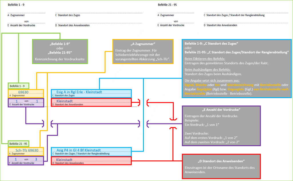 Sind mehrere Vordrucke erforderlich, dürfen die Befehle 1-9 und 21-95 auf einem oder mehreren Vordrucken kombiniert werden.